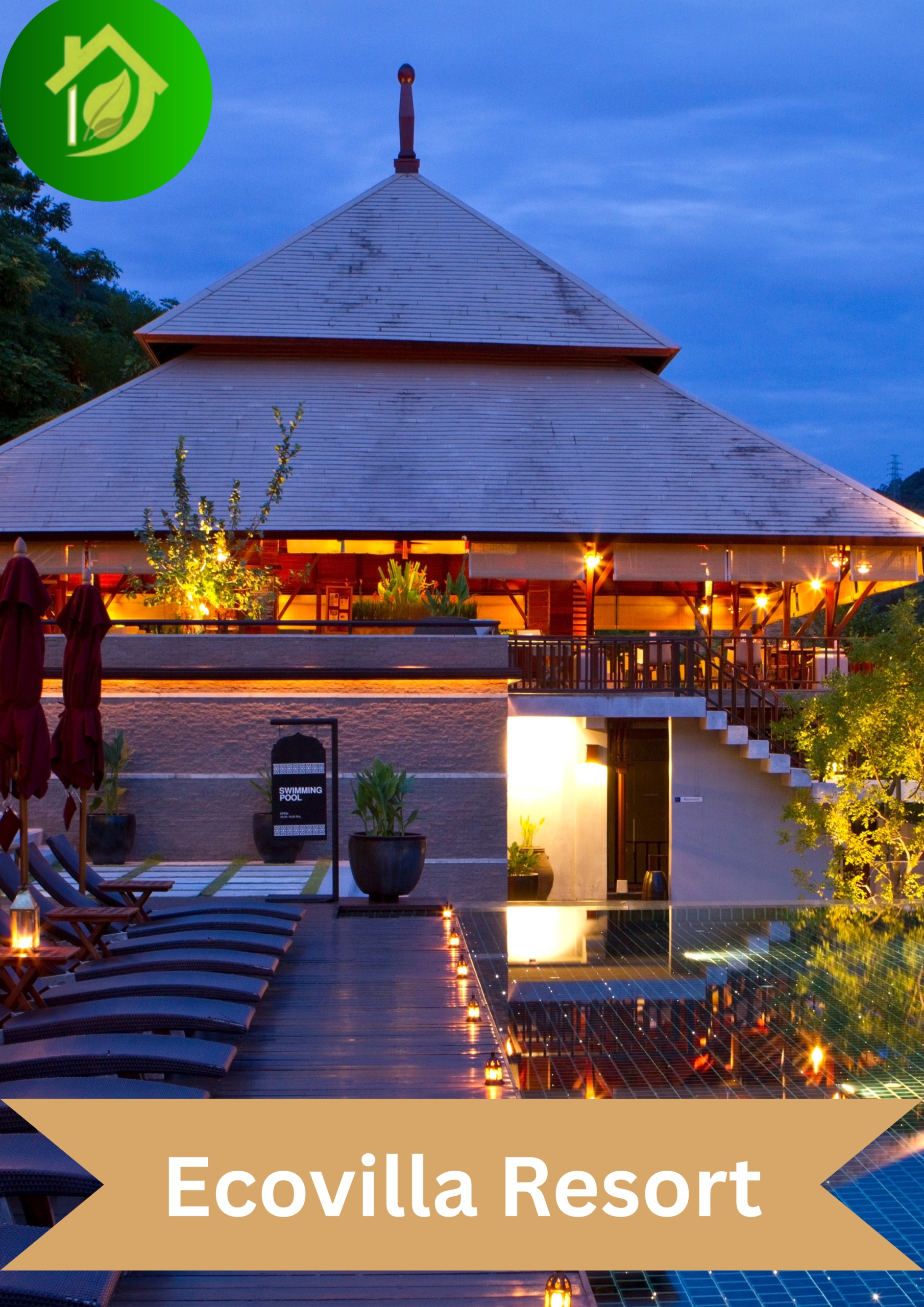 Ecovillafarm design blends eco-friendly architecture, green spaces, solar energy, rainwater harvesting, organic farms, modern villas, open landscapes, peaceful living, nature trails, sustainable materials, and community spaces.